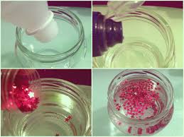 Terminado el paso anterior, colocamos los brillos es el frasco. Si usan agua, es conveniente que los brillos sean lo más livianos posibles, como por ejemplo purpurina. Si la idea es poner estrellitas, mini pelotitas de telgopor, pedacitos de pastito, o demás les conviene llenar el frasco con glicerina ya que al ser más espesa retardará el movimiento de los elementos suspendidos dentro del frasco (el aceites para bebés es una buena opción). Podemos disolver antes unas gotitas de colorante en el líquido y hacerlo rosado para haditas, por ejemplo, o azul para astronautas…